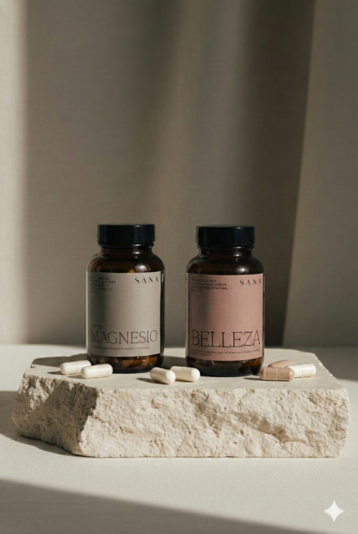 Este pack combina Triple Magnesio y Colágeno marino hidrolizado Peptan® Tipo I + vitamina C para ayudarte a regenerarte desde dentro: mejorar tu descanso, recuperar vitalidad y devolver frescura a tu piel y cabello.